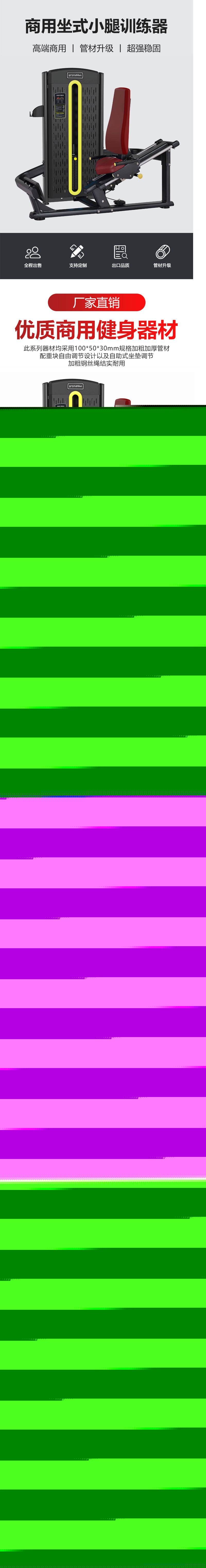 9、載荷配件:直徑25*1.5mm鍍鉻導杆,滑輪為加硬一體PP滑輪,鋼絲繩為內徑5.8mm7芯進口鋼絲,最大使用載荷220公斤;